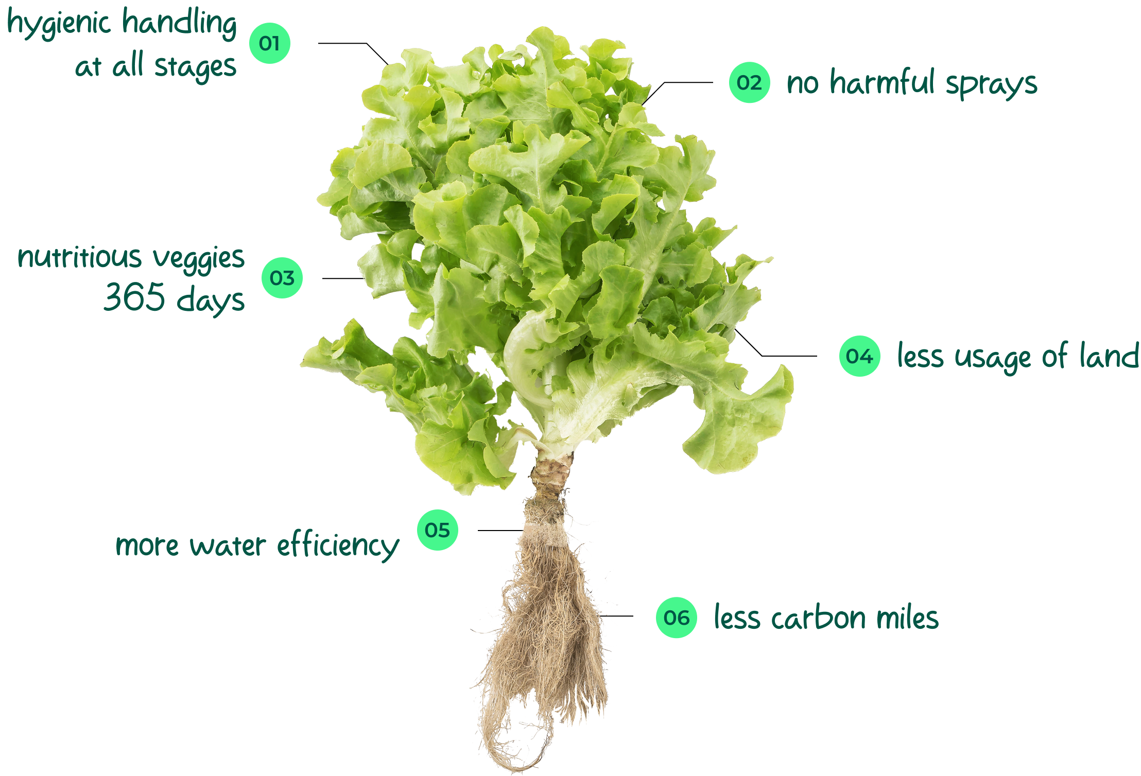 We believe in working closely with nature while leveraging modern technology. Using hydroponic and organic techniques, we ensure conducive environment for plants, low environmental impact and high quality harvest